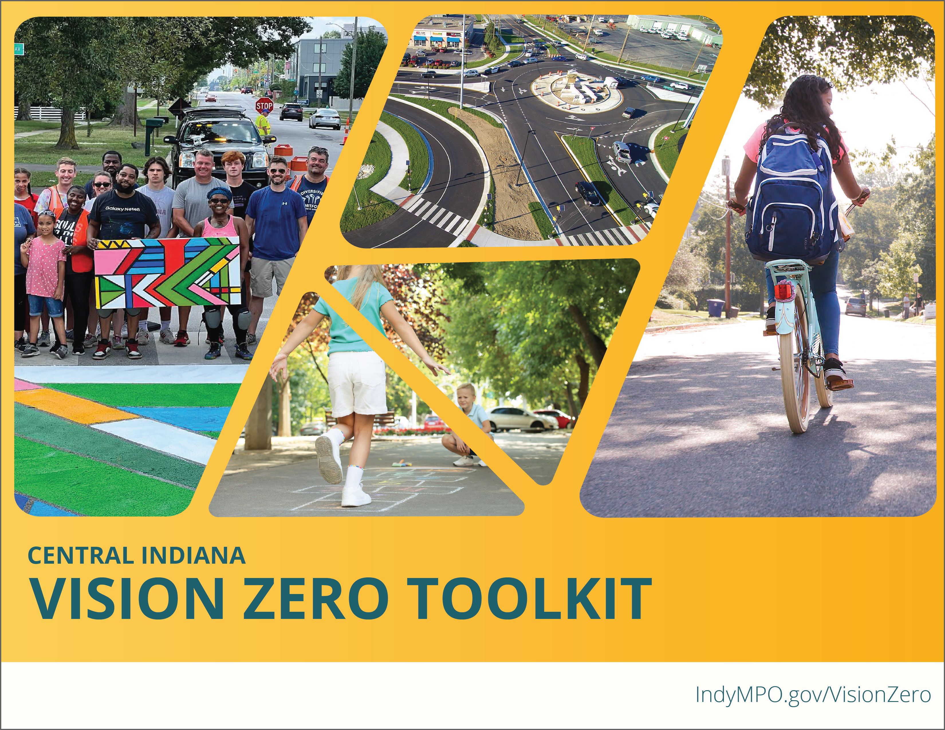 The Indianapolis MPO developed the Vision Zero Toolkit to educate Central Indiana residents about practical strategies for safer transportation across all modes (whether driving, walking, cycling, or using mobility devices) and in all settings, from urban to rural. Vision Zero programs take an "all of the above" approach to addressing traffic crashes from enforcement to vehicle design. This toolkit focuses on urban planning, policy, land use, and engineering interventions that can be implemented at the local level and contribute to a larger program. It also builds on existing regional successes, like suburban roundabouts and redesigned urban streets, to create safer, more effective transportation systems.